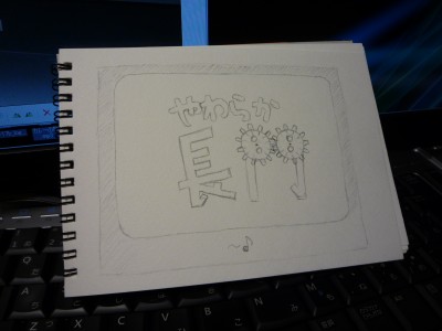スペースでやわらか長門の構想を練っていました。で、タイトルロゴと1ページ目のネームです。